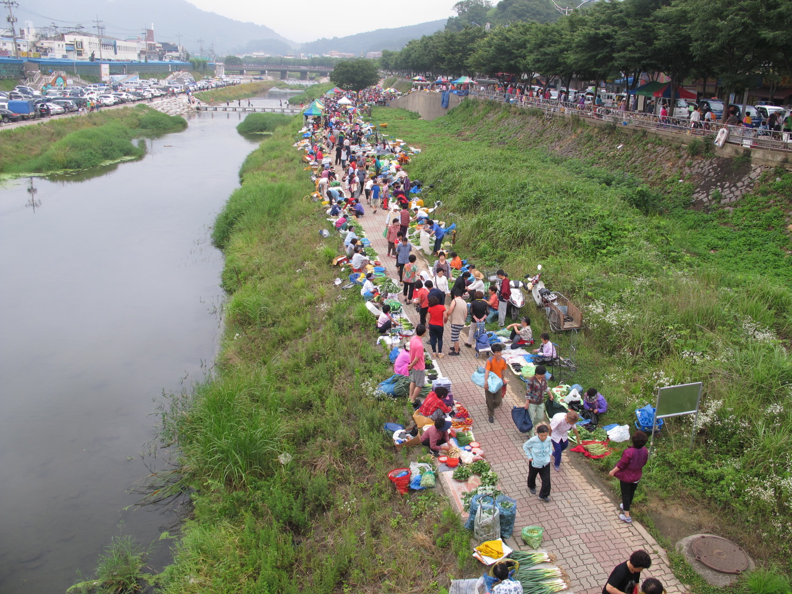 매일 아침이면 꼭두새벽부터 전주남부시장 천변에는 ‘새벽시장’이 섭니다. 전주시가 남부시장 도로변에 있던 노점상들을 양성화하여 임시 비가림시설을 설치하고 분양을 해줬습니다. 그 이후 분양을 받지 못한 또 다른 노점상들과 근교 시골에서 올라온 농부들이 몇 사람씩 시장 건너편 천변에서 장사를 하기 시작했습니다. 그렇게 시작된 새벽시장이 지금은, 매곡교 바로 아래까지 이어지며, 엄청나게 규모가 커졌습니다.