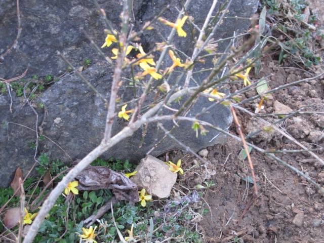 영춘화입니다. 꽃모양과 색깔이 꼭 개나리 같은데, 개나리꽃 보다 훨씬 먼저 핍니다. 그래서 이름부터 ‘영춘화’랍니다.