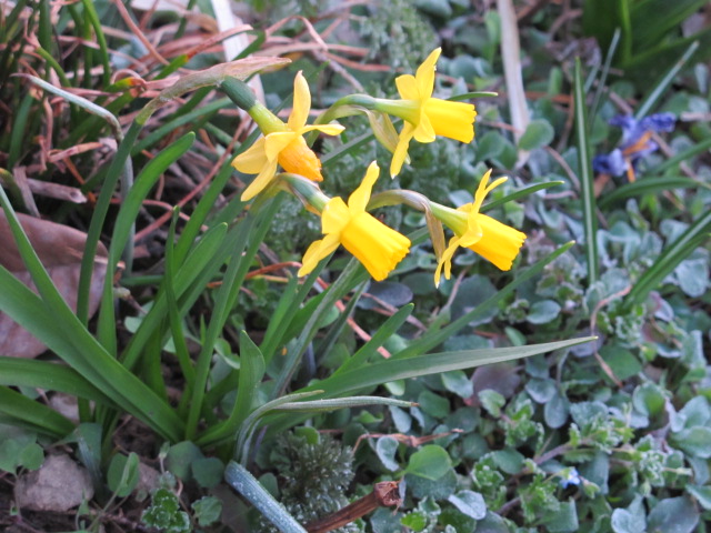 애기수선화입니다. 수선화는 품종에 따라 피는 시기가 다릅니다. 몇 년전 겨울, 꽃집에서 애기수선화 화분을 샀었습니다. 봄이 오기 전에 화분을 거실 창가에 두고 꽃을 봤습니다. 꽃이 시든 뒤 남은 구근이 아까워 뜰에 심었는데, 그 수선화가 해마다 봄이면 일찍 꽃을 피우고 있습니다. 다른 수선화들은 꽃대가 올라오고 있는 중입니다.
