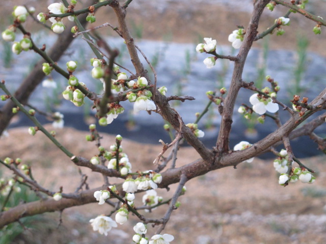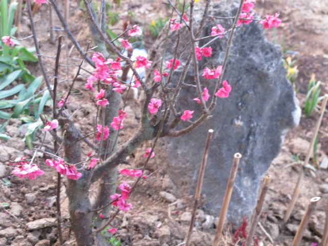 홍매입니다. 복숭아나무에 접을 붙입니다. 밑둥우리에서 복숭아순이 올라오곤 합니다. 청매보다 비교적 일찍 꽃이 핍니다.