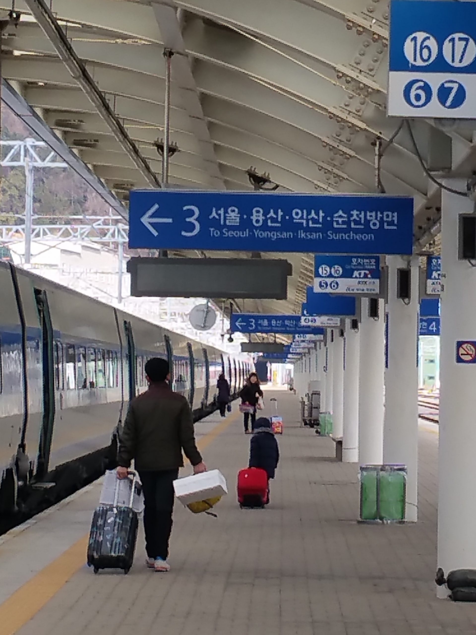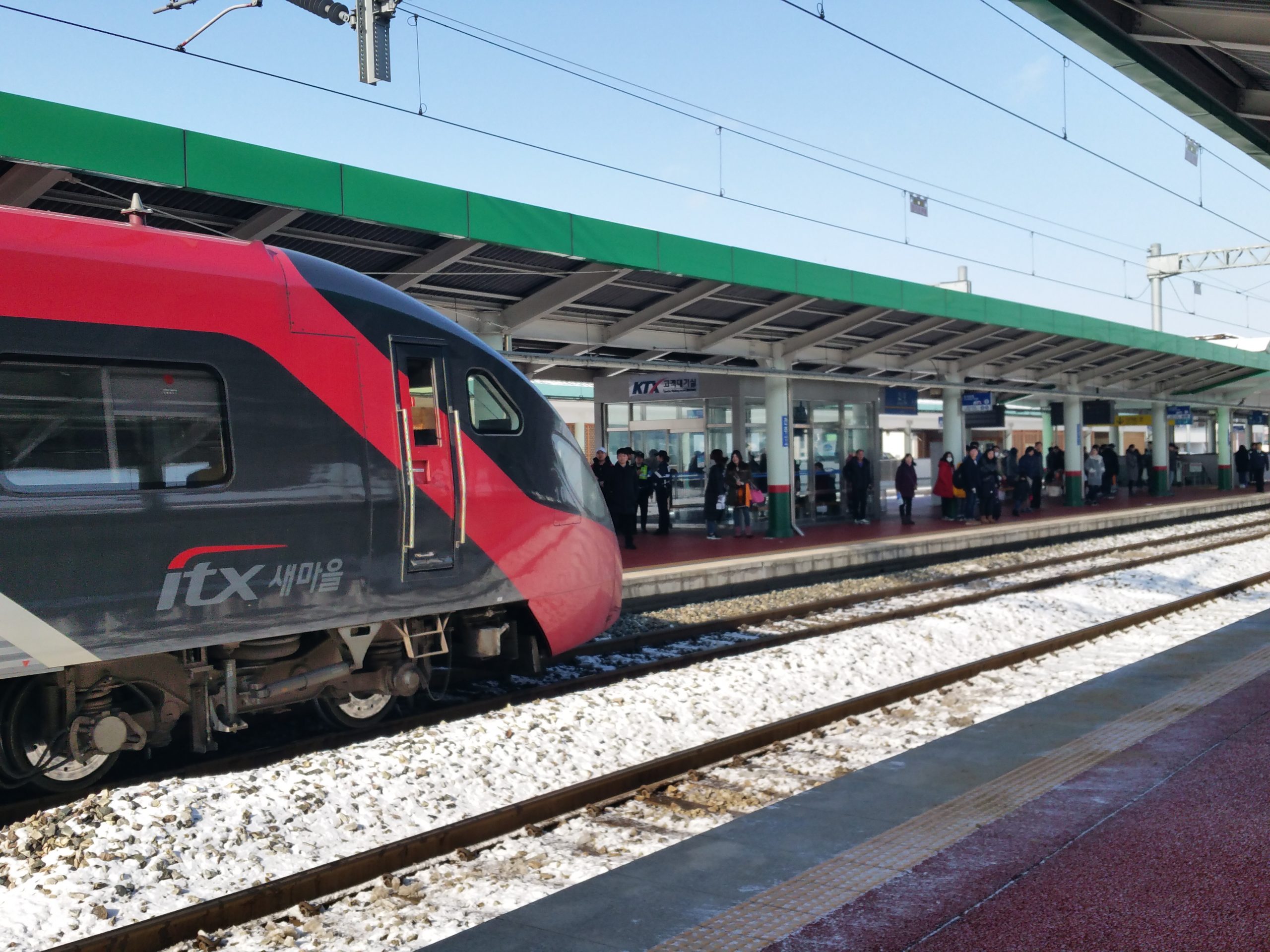 기다리는 동안 건너편 차선으로 서울행 KTX가 들어왔습니다. 기차가 들어오는 순간의 모습을 담아봤습니다.