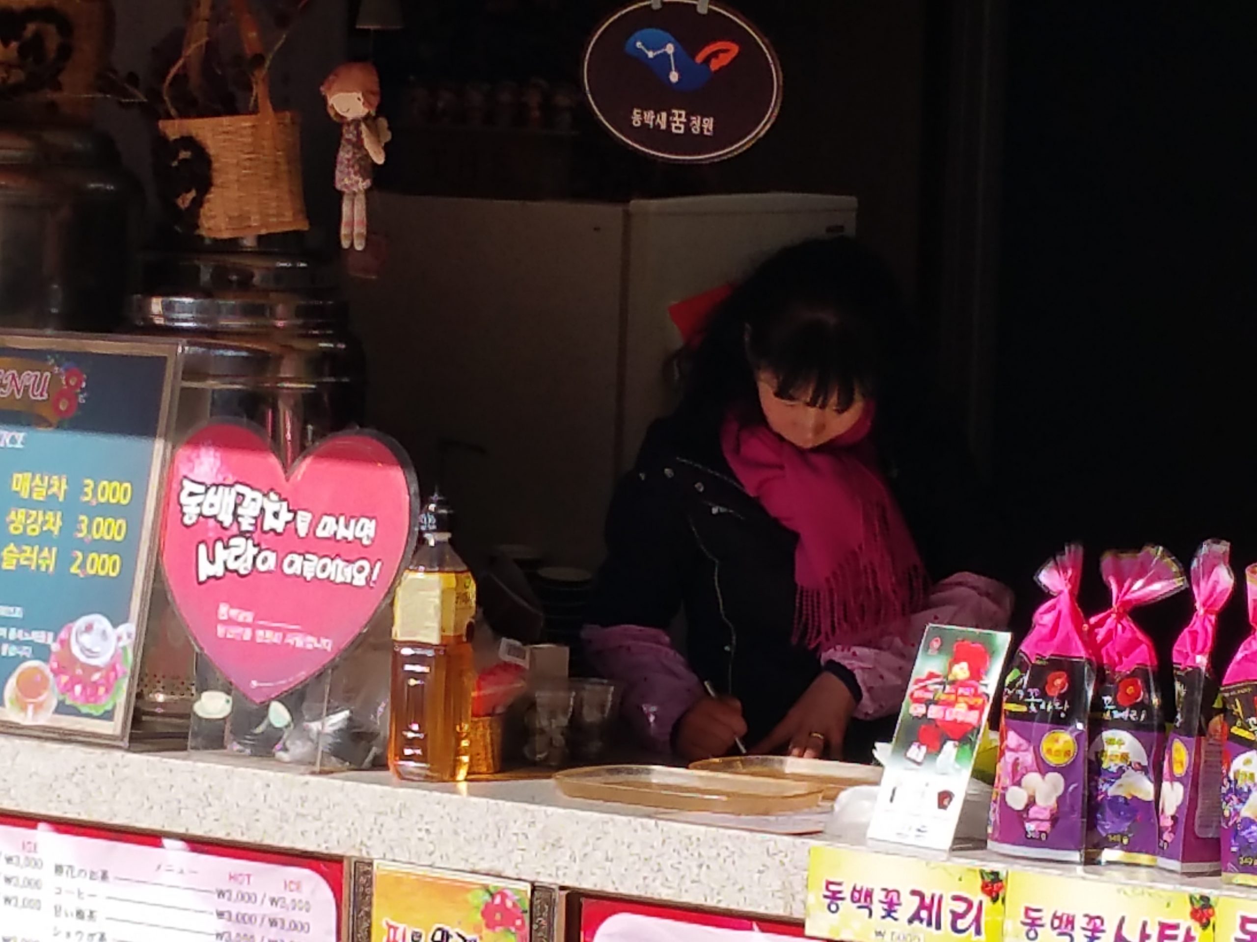 동백차를 파는 조그만 가게도 있었습니다. 주인 아주머니가 한가롭게 보였습니다. 관광 시즌에 단체손님들이 오면 정신없이 바쁠 때도 있을 것입니다. 누군가 한 사람이 차를 사 마시면 나머지 사람들도 덩달라서 줄을 잇고 사먹을 것입니다.