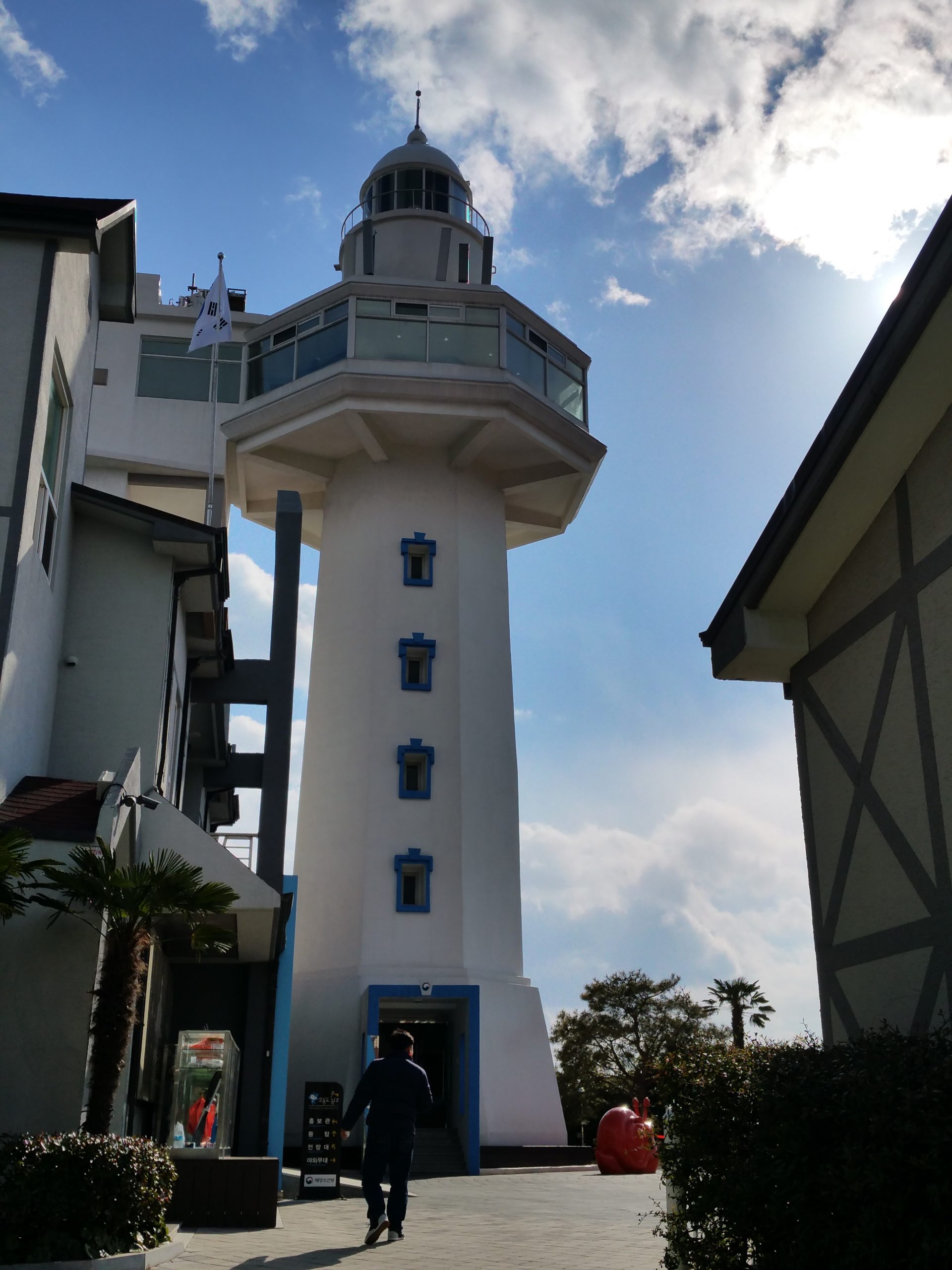 등대에 있는 관망대에서 주변 경관을 바라봤습니다. 유리창이 둘러 쳐 있어서 빛이 반사 되어 보입니다.