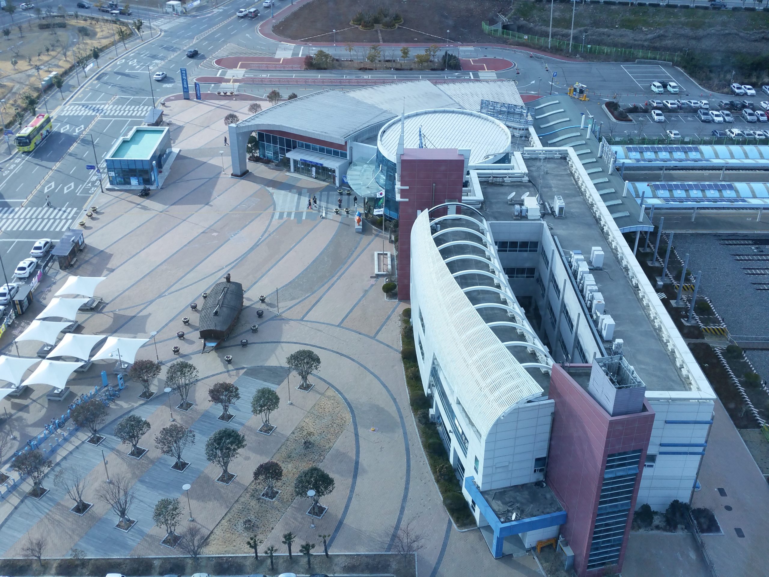 높은 곳에서 보니 여수엑스포역이 한 눈에 들어왔습니다. 옛날 여수역 근처에 있던 제분회사나 시멘트회사 석탄회사 하치장이 있던 자리가 지금의 엑스포가 열린 곳이고 여수엑스포 기차역이 되었습니다. 기차를 타고 여수역에서 내려 조금 걸으면 오동도가는 제방이었는데 지금은 그 흔적이 거의 남아 있지 않았습니다.