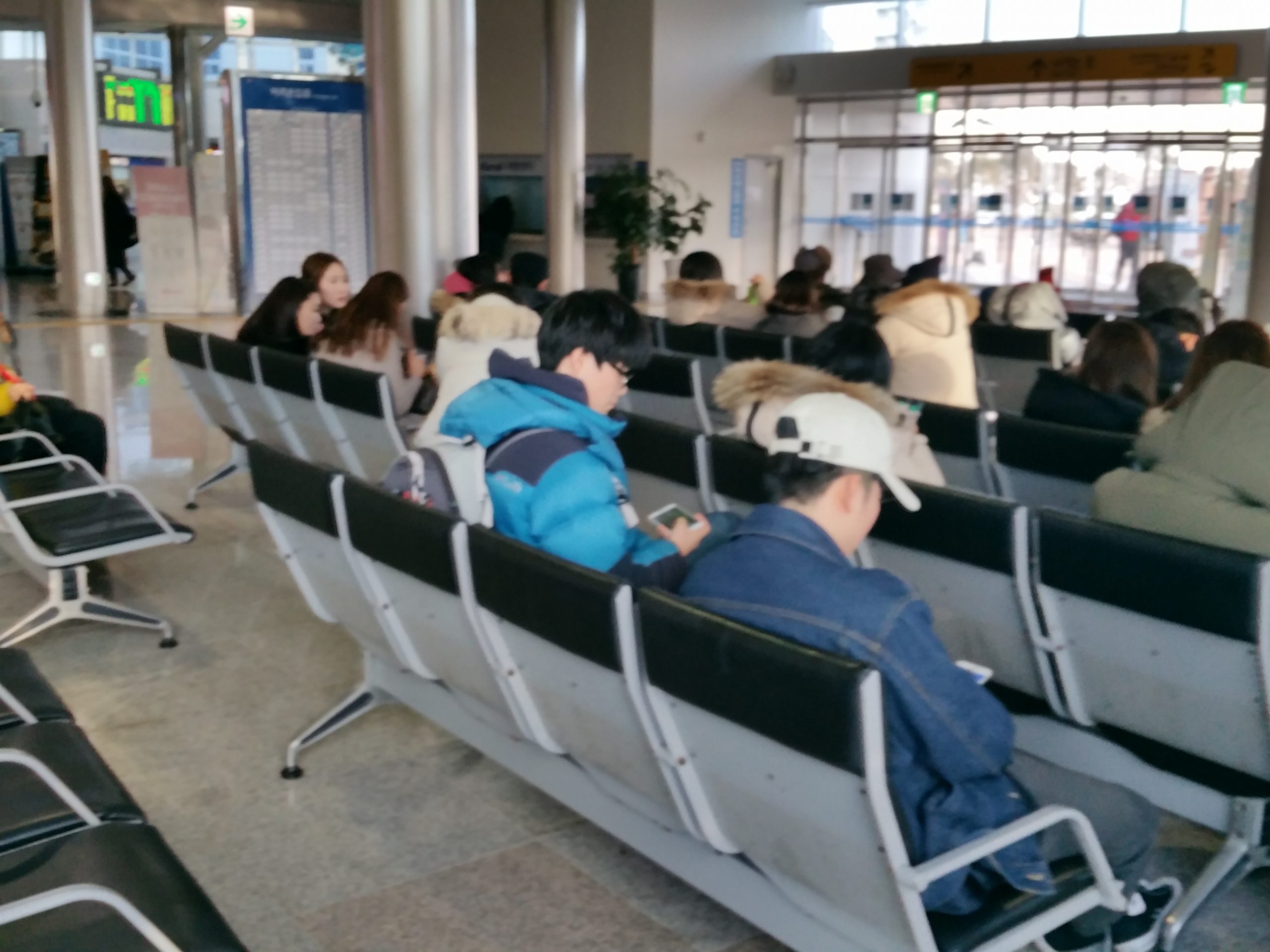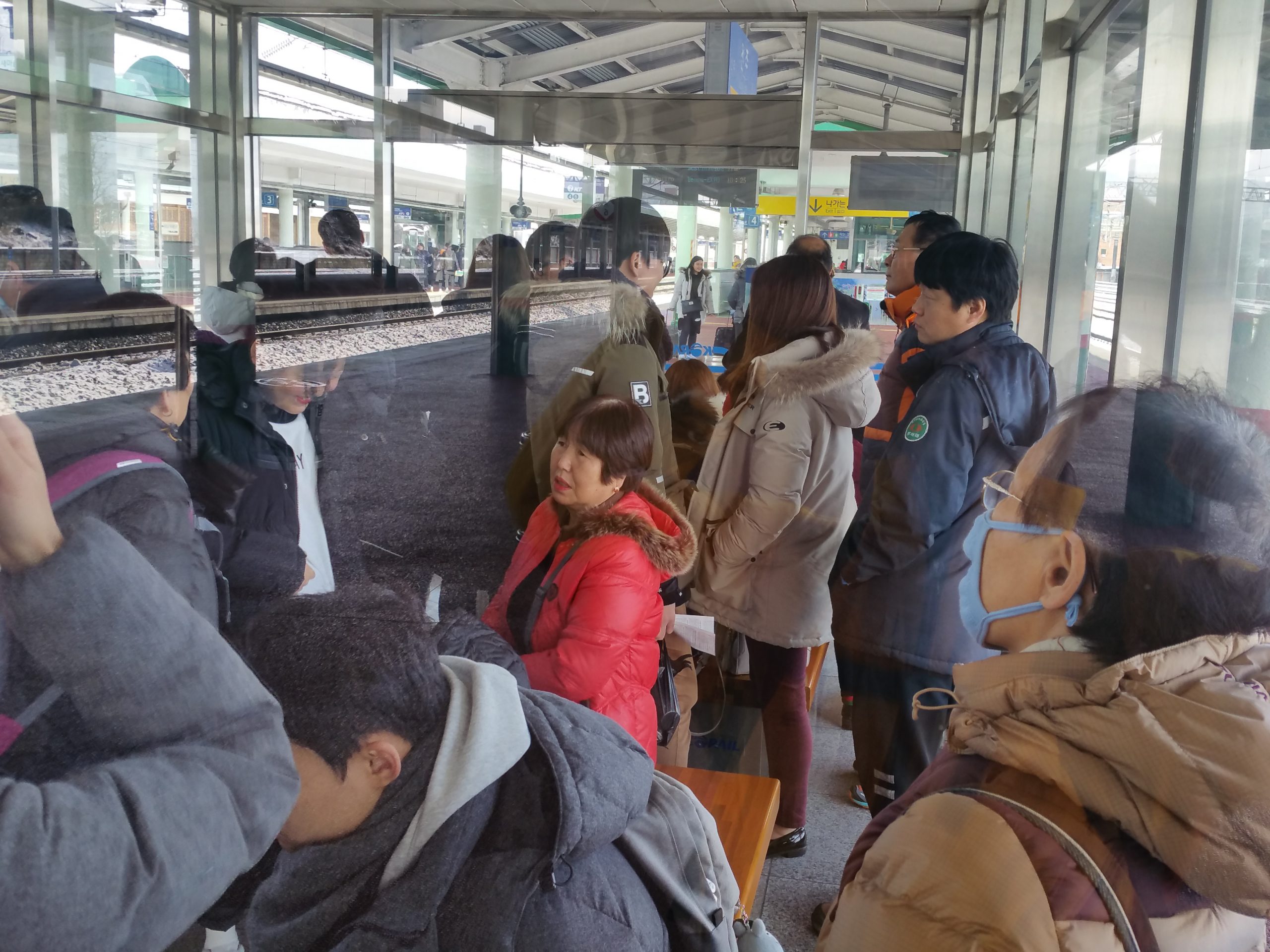 열차를 타는 승강장에 간이 휴게실이 있었습니다. 날씨가 춥다보니 기차를 기다리는 승객들이 대부분 옹기종기 모여들었습니다.