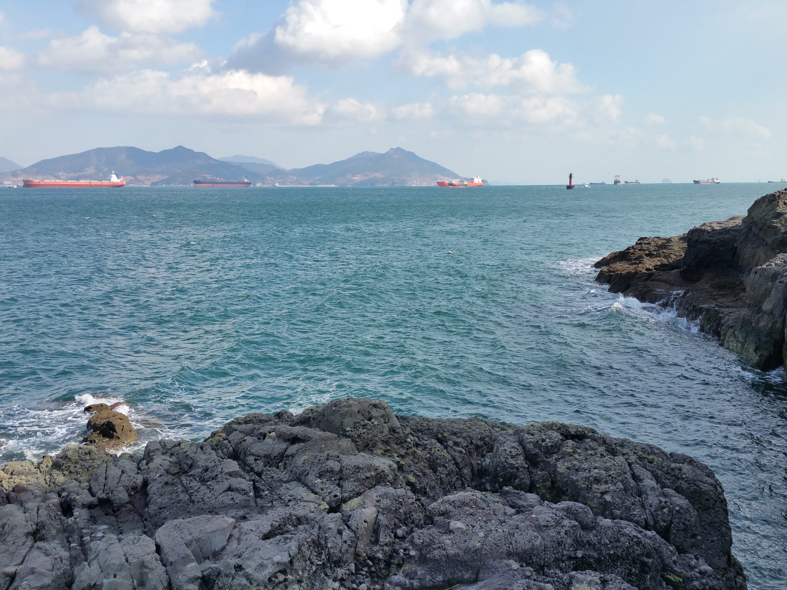 산책로에는 직접 바닷가로 내려갈 수 있는, 갯바위 코스도 있었습니다. 날씨가 추웠지만 시원한 풍경을 놓칠 수가 없어서 내려가 봤습니다. 여기는 남해, 군산 앞바다의 물과는 달랐습니다. 바닷물 빛깔이 여러가지 입니다. 언젠가 울릉도에 갈 때, 동해 깊은 곳의 바닷물은 잉크색이었습니다. 검푸른 빛깔이 무섭게 보였습니다. 오동도 앞 바닷물은 옅은 쪽빛, 맑은 가을 하늘빛에 가까웠습니다.