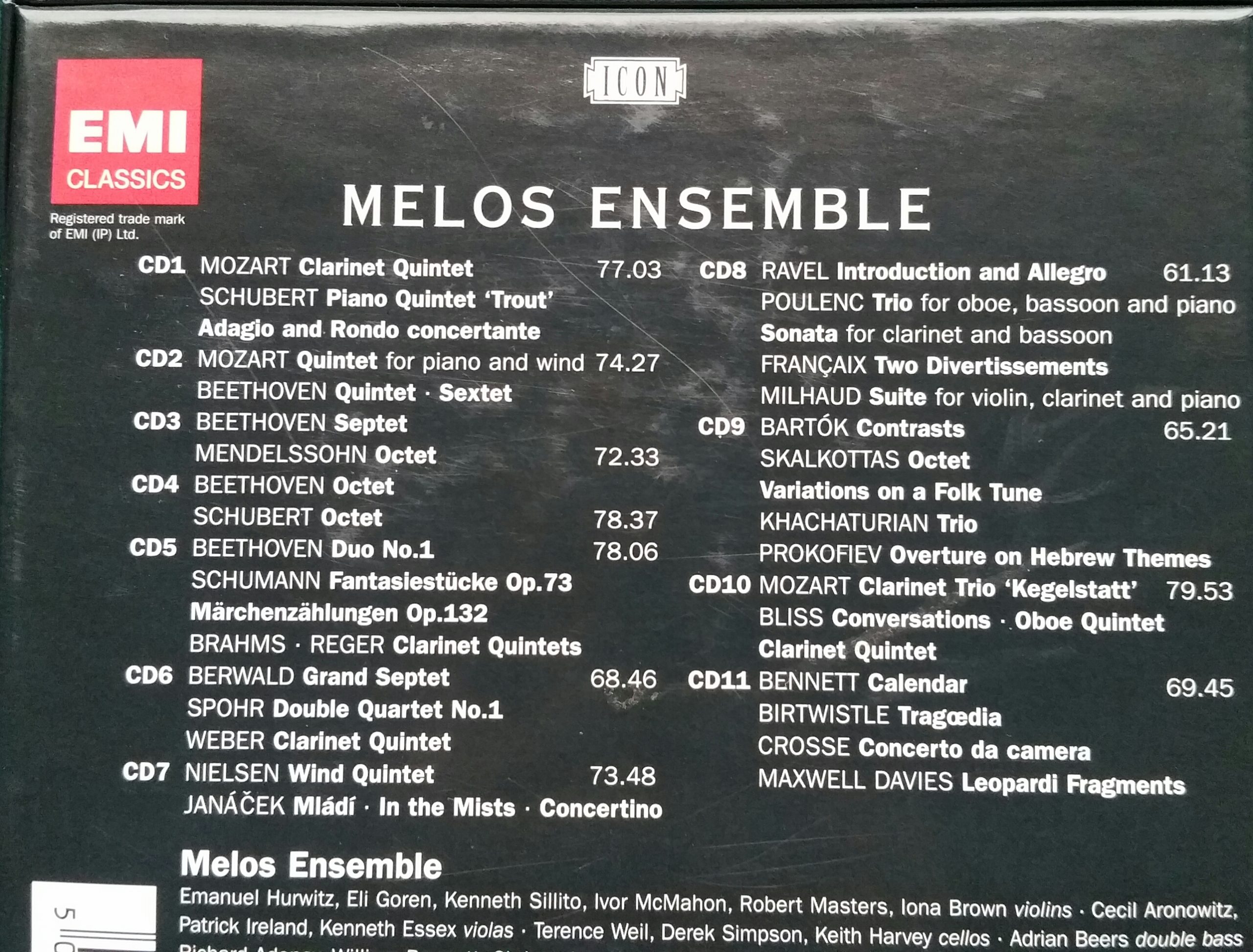 멜로스앙상블은 1950년 영국 런던에서 창립되었답니다. 맬로스앙상블과 같은 구성으로 된, 세계적인 명성을 성취한 단체로서는, 꼭 세번째에 해당하는그룹이랍니다. 앙상블이 설립하게 된 배경에는 통상적으로 현악사중주단이나 피아노트리오와 같은 단체들이 연주할 수 없는 악기편성으로 된 곡들을 연주하게 하기 위한, 열 두어명 남짓으로 된, 가변적인 ‘인재풀’로서 뒷받침하고자 하는 뜻이 있었답니다. 그동안, 19세기 초반부터, 그런 앙상블 곡들의 연주는 빈필이나 베를린필의 단원들이 해왔다고 합니다. 그러다가 1929년에 ‘첵코9중주단(Czech Nonet)’이, 스포르의 9중주곡을 바탕으로, 프라하에서 결성되었답니다. 1947년에는 ‘빈8중주단(Vienna Octet)’이 결성되었고, 이 것이 런던에서 멜로스앙상블을 결성하게 된 자극이 되었답니다. 그 당시 영국은 2차대전의 후유증으로 고통받고 있었고, 폭격 맞은 상처가, 곳곳에 남아있었지만 낙관적인 분위기가 팽배한 시기였다고 합니다.