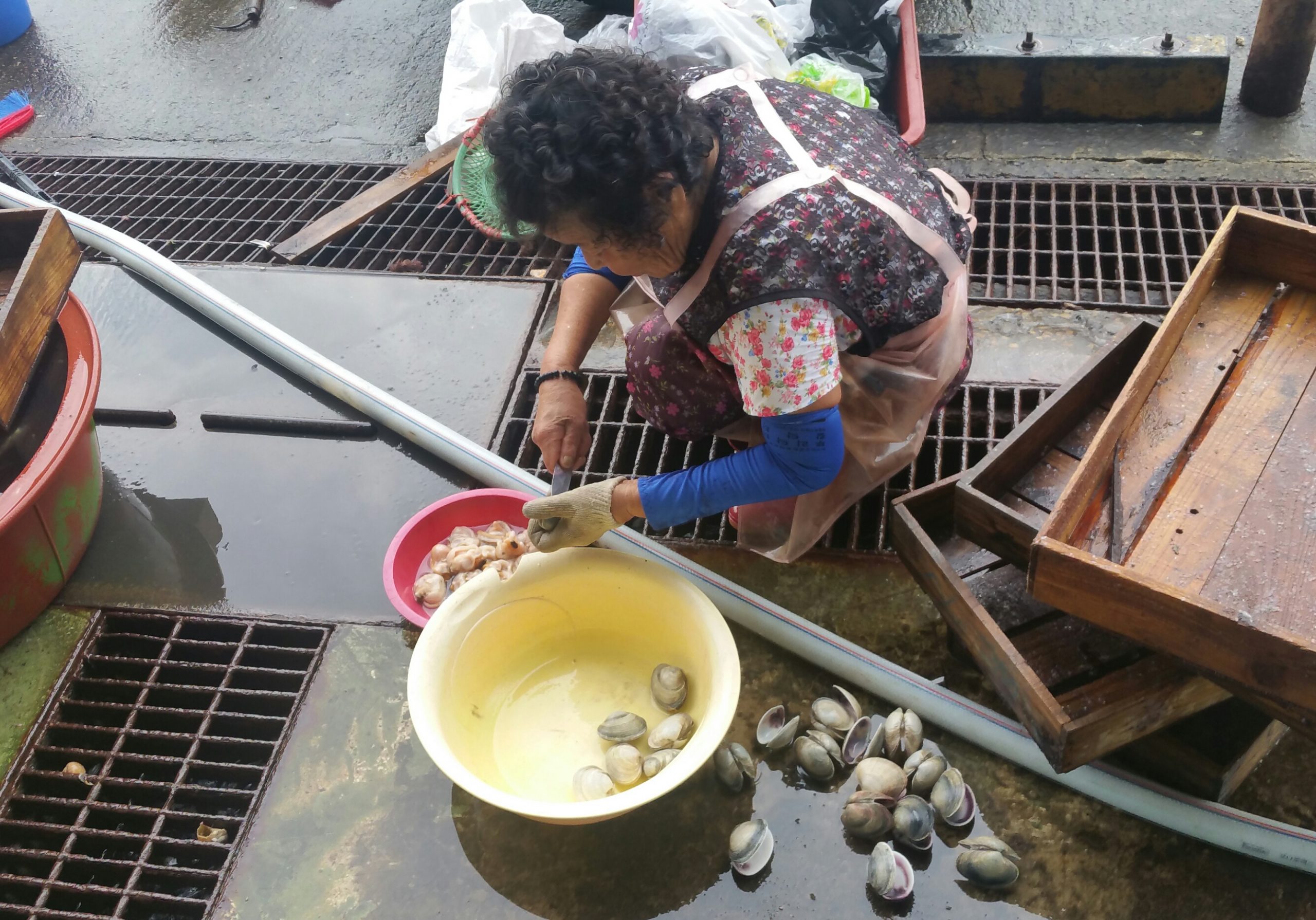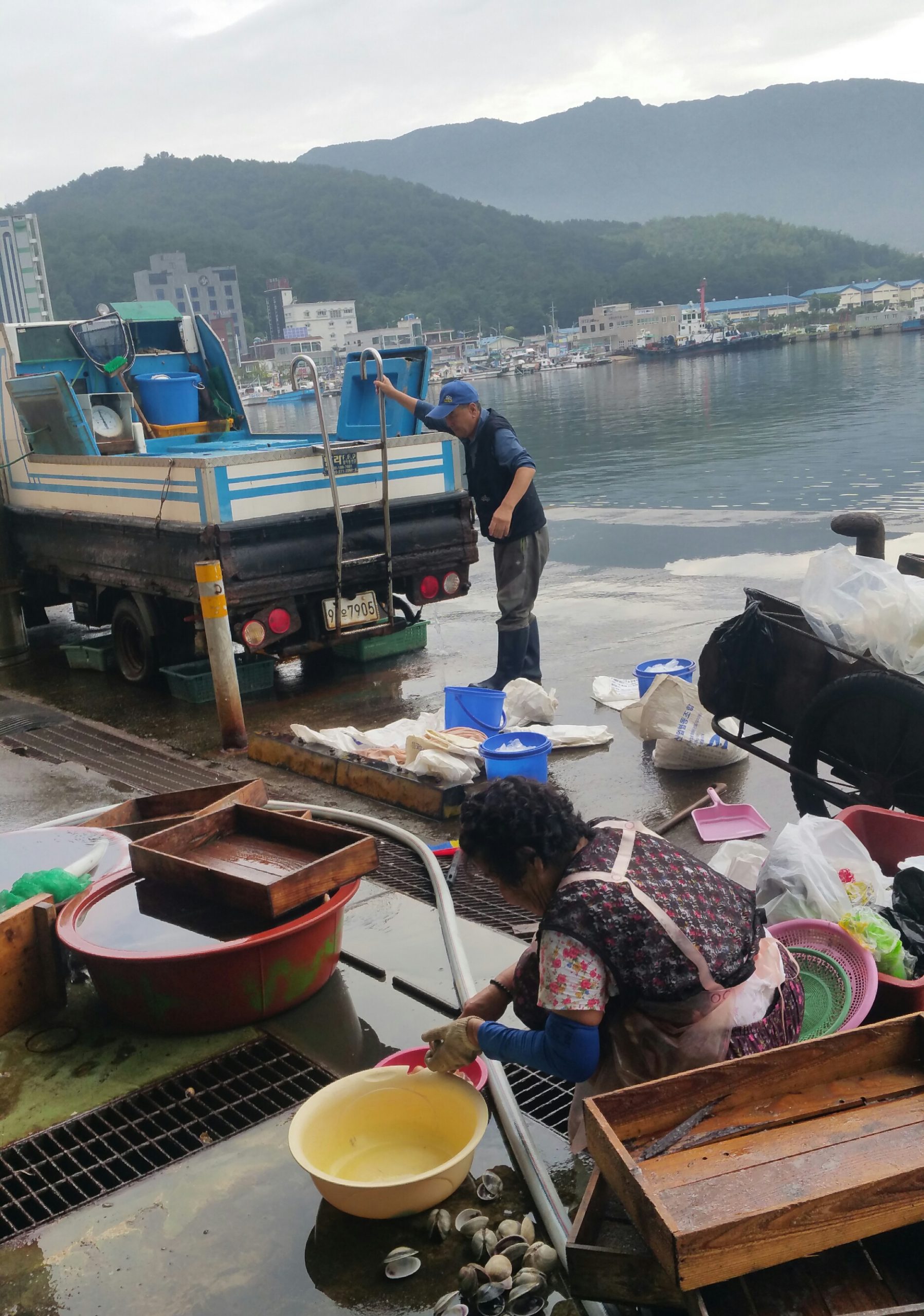 이른 아침에 어시장 구경도 하고, 싱싱한 생선을 사려고 진해항을 찾아 갔습니다. 어판장의 수산물 경매는 진즉에 끝났고, 딱 한 분이 조개 손질을 하고 계셨습니다.