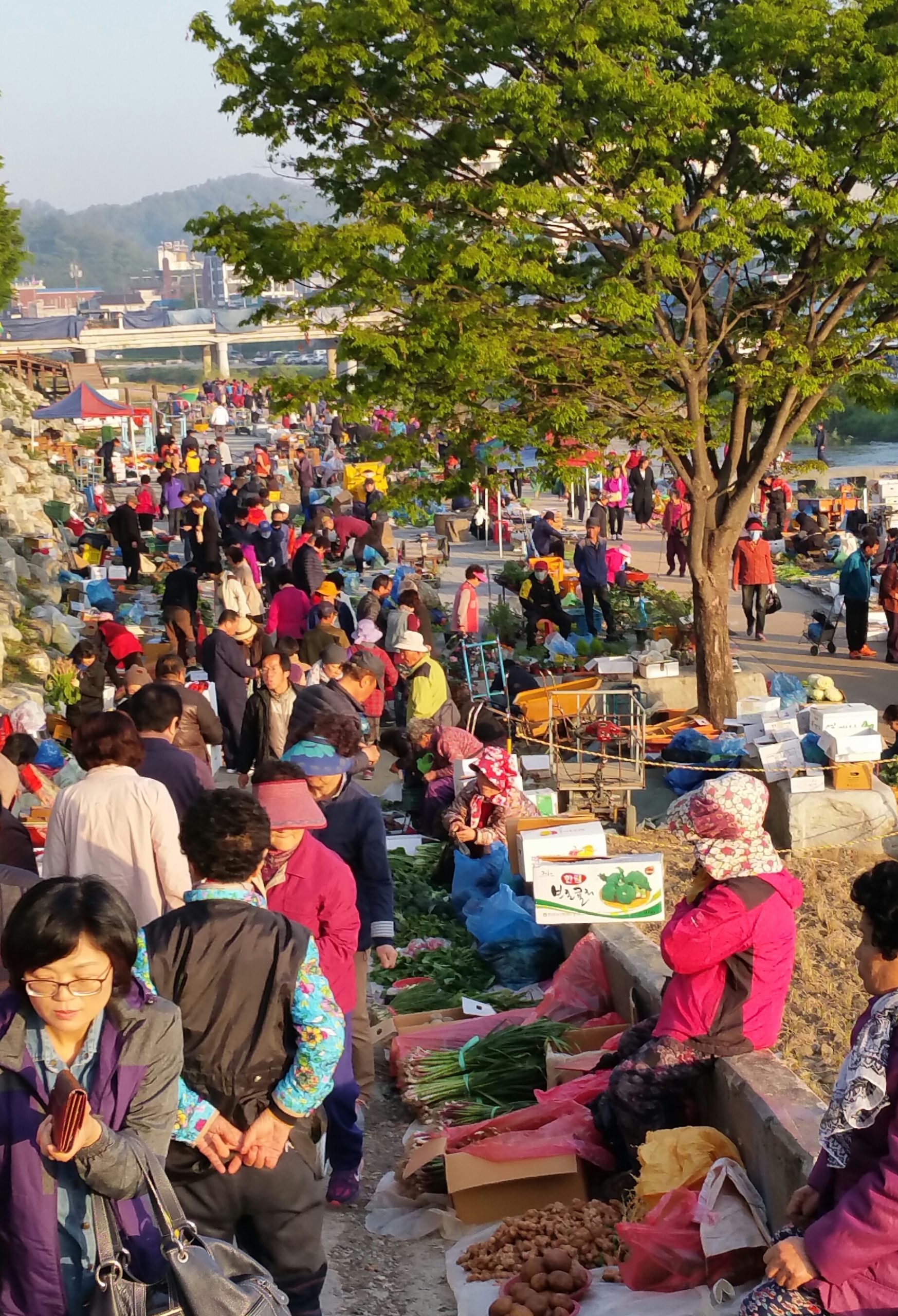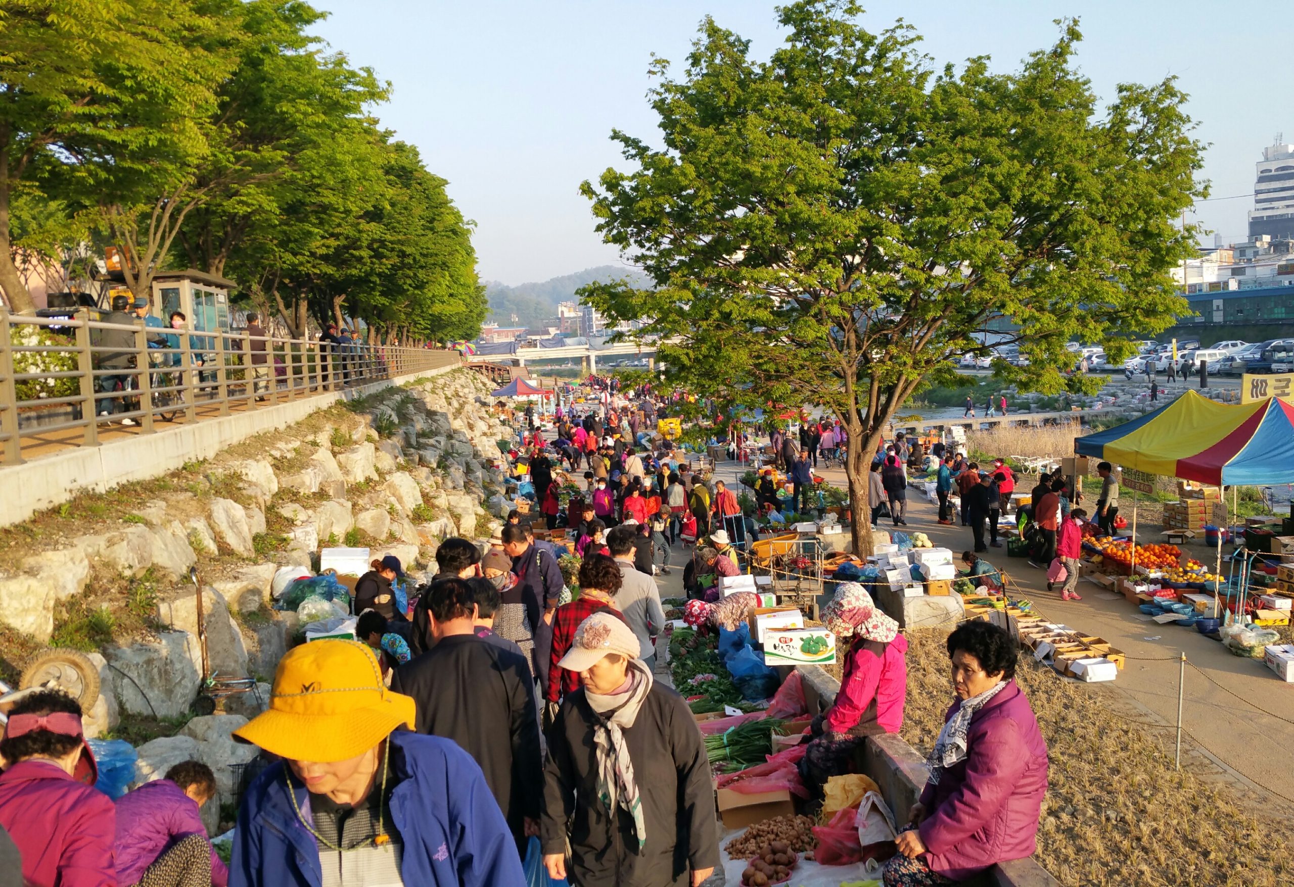 전주천변에는 아침마다 장이섭니다. 동이 틀무렵부터 평일은 10시까지이고 주말에는 12시까지 장이 섰다가 파합니다. 시청에서 그렇게 공지를 했겠지만, 파장이 되면 장사하던 분들이 깨끗하게 뒷정리를 합니다.