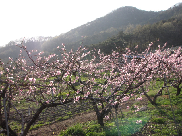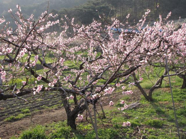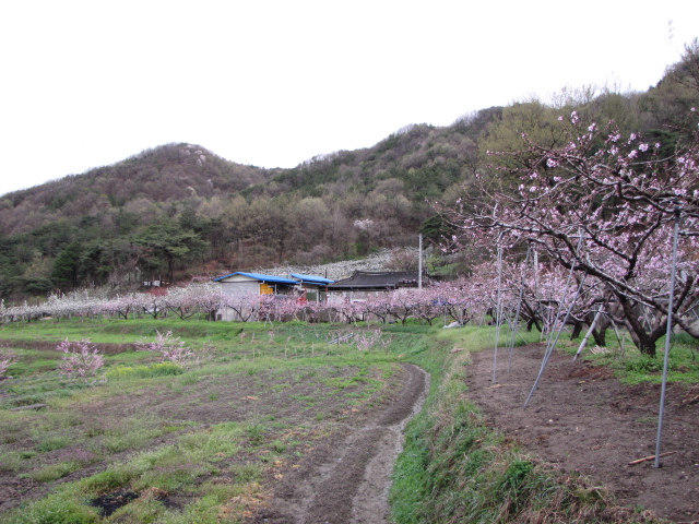 복숭아꽃이 만발하였군요. 전주 우아동 근방에도 복숭아밭이 많던데, 이곳은 또 어디인지 모르겠습니다.
