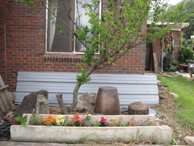 사진: 새로 만든 꽃밭. 매화는 동편 창 앞에 한 그루 심으면 좋다.
