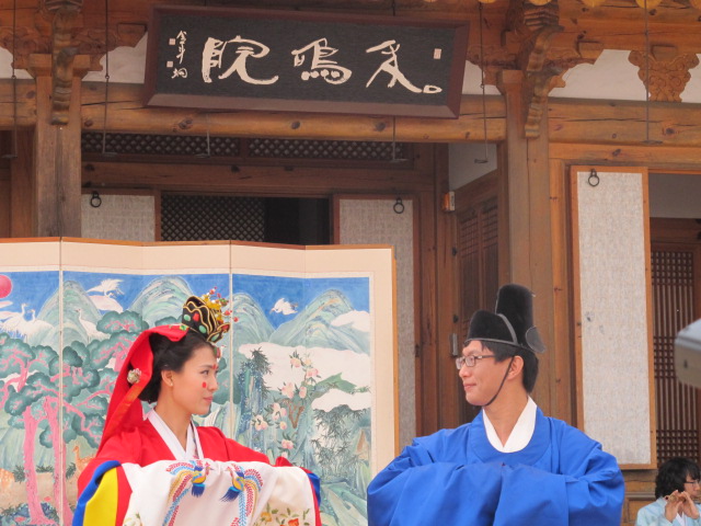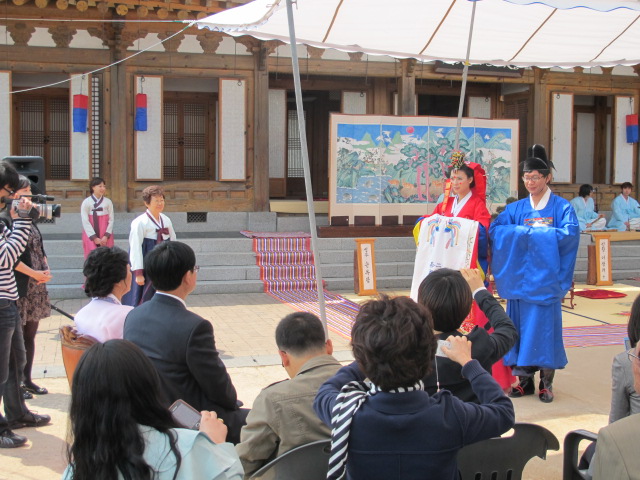 전주전통문화센터에서 있었던 우리나라의 전통혼례식에 참석했습니다. 중등학교 교장으로 재직했던 친구의 아들결혼식이 있었기 때문입니다. 제 기억으로는, 친구의 아들은 서울대학교 인문대학 국어국문학과를 3학년까지 다니다가, 무슨 생각을 했었는지, 그만두고, 경원전문대학 에니메이션학과에 편입하여 졸업했습니다. 그 뒤 ‘중국에 가서 공부를 계속하고 있다’는 얘기만 들었고, 혼례식장에서 언뜻 들으니, 사돈댁이 중국이랍니다.