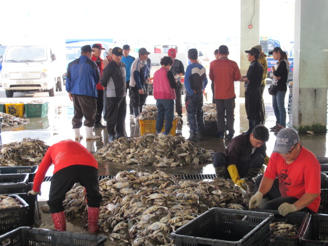 늦은 점심을 마치고 법성포 구경을 나섰습니다. 시가지라고 할 것도 없고, 쓸쓸한 어촌 풍경이 눈에 들어왔습니다. 집집마다 ‘굴비’ 천지였습니다. 어판장에 가니, 마침 경매가 이루어지고 있었습니다. ‘게’들만의 잔치, 사람도 생선도 성근, 쓸쓸한 풍경이었습니다. 그런 풍경사진을 몇 장, 올리겠습니다.