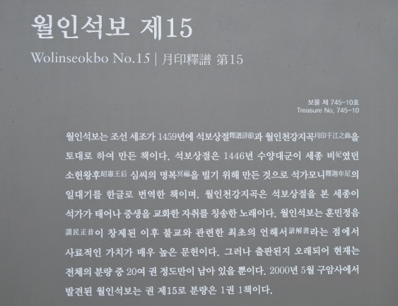 사진 4: 구암사에 보관 중인 ‘월인석보’에 대한 안내문