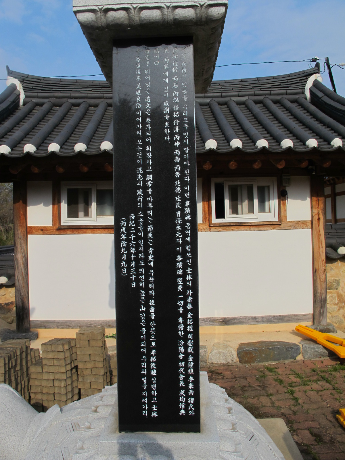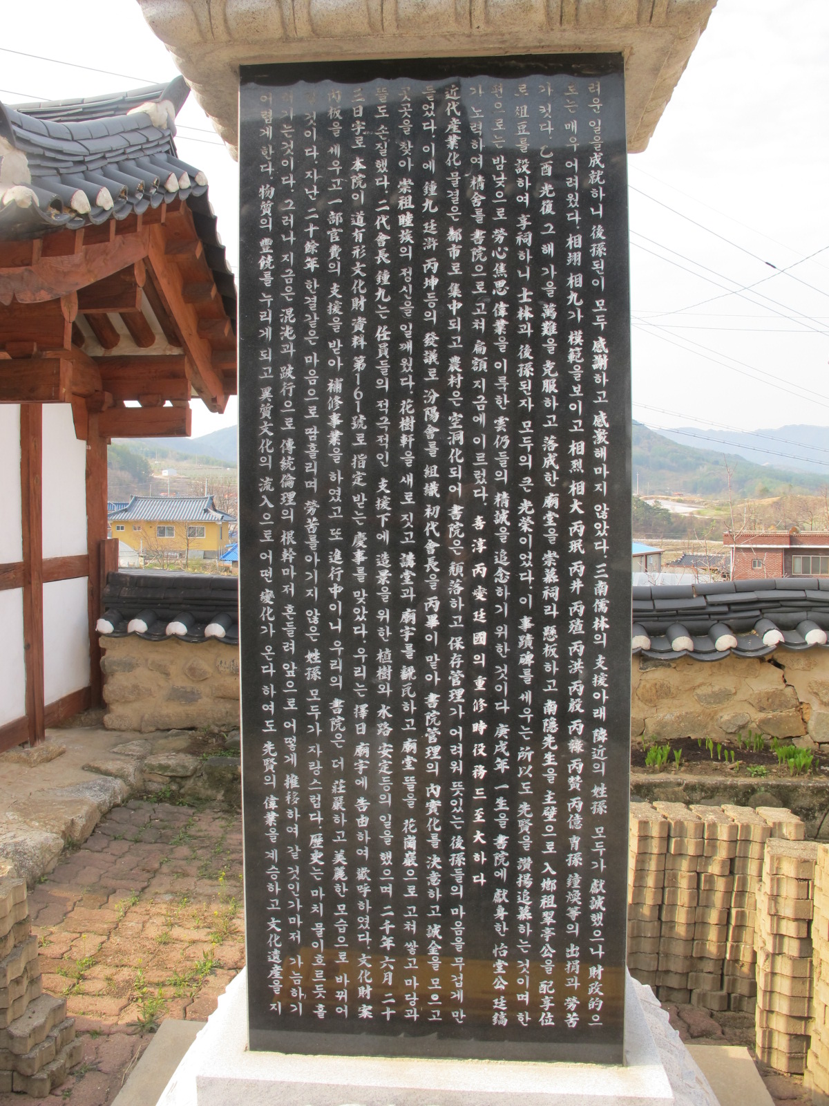 서원에 있는 자료 가운데 오래된 태극기와 애국가가 써진 한지로 된 문서가 있었습니다. 분양서원사적비를 새로 건립했는데 문장을 제 친구가 지었다고 했습니다. 전문을 차근차근 읽어보니 그 내용이 매우 휼륭했습니다. 가까운 곳에 달성서씨 묘원도 조성하였는데 보기가 좋았습니다. 묘는 일정하게 크기가 정해진 석물을 썼는데 그 당시 가격으로 25만원쯤 했다고 합니다. 그런데 묘 1기당 분양가를 30만원 받았다고 합니다. 거의 무료로 분양을 했던 셈입니다. 서원을 비롯하여 묘원 등, 이곳 저곳을 둘러보니, 친구가 대단히 휼륭한 일을 했다는 것을 곳곳에서 느낄 수가 있었습니다.