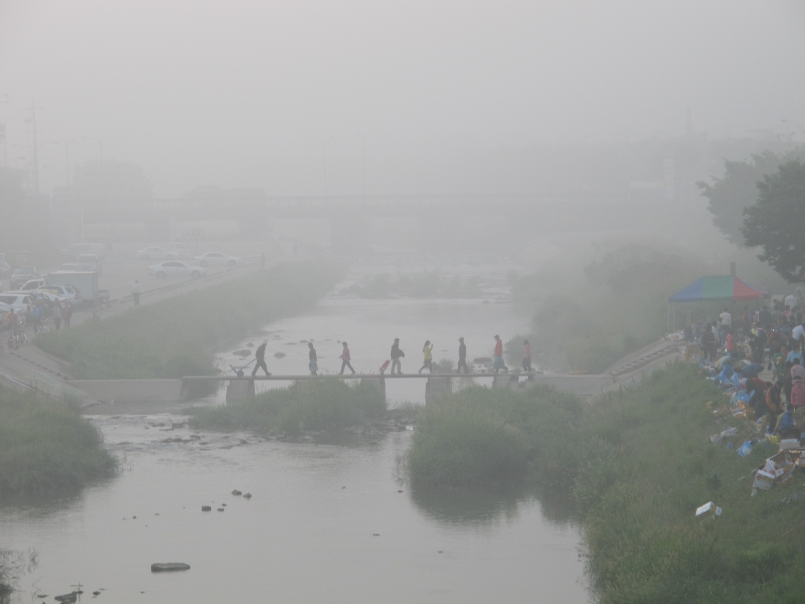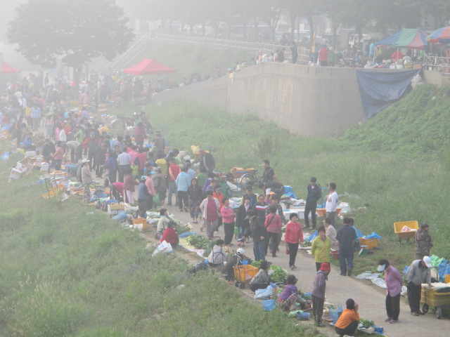 전주천변에 새벽시장이 서기 시작한지가 몇 년 안 됩니다. 글쎄, 한 5 – 6 년 쯤 될까 싶습니다. 그 전에는 이른 아침에 남부시장 옥상에 새마을시장이라고 섰습니다. 주로 음식점하는 분들이랄지, 큰 잔치가 있으면 장보기를 했습니다. 그러다가 남부시장 첨변도로에 있던 노점상들을 양성화하여 그 자리에 전주시에서 간이 점포를 만들어 실수요자들에게 분양을 했습니다.시골에서 농사지으신 농산물을 보따리에 싸들고 나오시는 분들이 갈 곳이 없어졌고, 그런 분들이 주차장 건너편 전주천변 고수부지에 몇 분씩 모이기 시작한 것이 지금 새벽시장이 되었습니다.