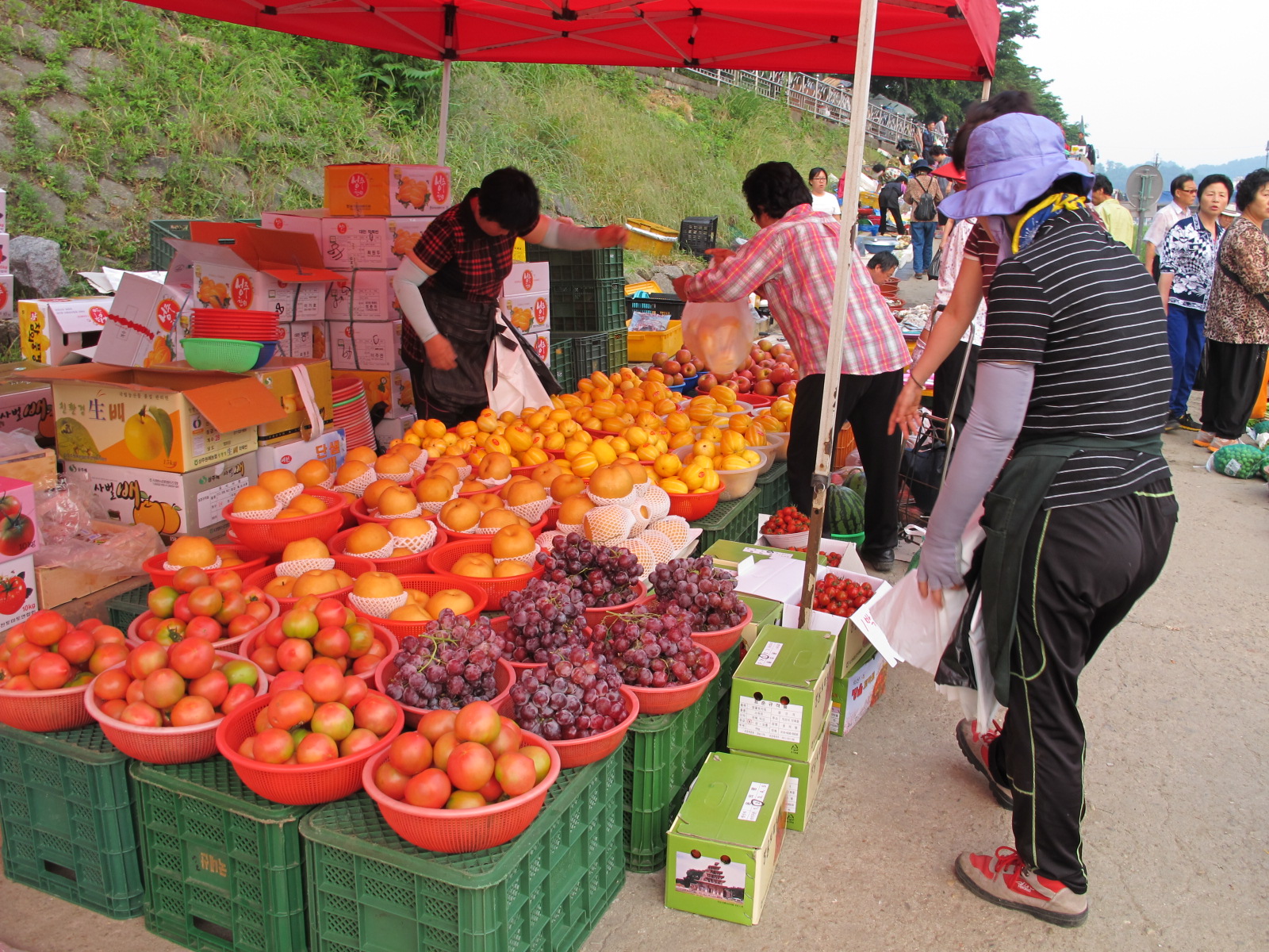 오늘(6월 7일) 시장에는 초여름을 알리는 푸성귀들이 많았고, 마늘을 비롯하여 각 종 생선 죽순 도마토 약초등, 갖가지 볼거리들로 넘쳤습니다.