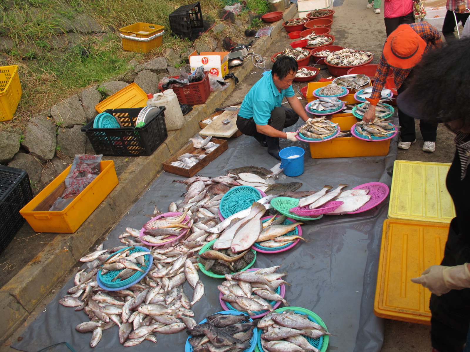 이 분은 항상 이곳에 좌판을 벌리십니다. 내외분이 함께 장사를 하시는데 제법 규모가 큽니다. 꽃게는 항상 살아있는 것도 팔고, 오늘은 우럭도 활어로 가져 오셨습니다. 어떤 때는 산 문어도 있습니다. 가격은 특별히 싸지는 않고 ‘보통’이라고 보여집니다.