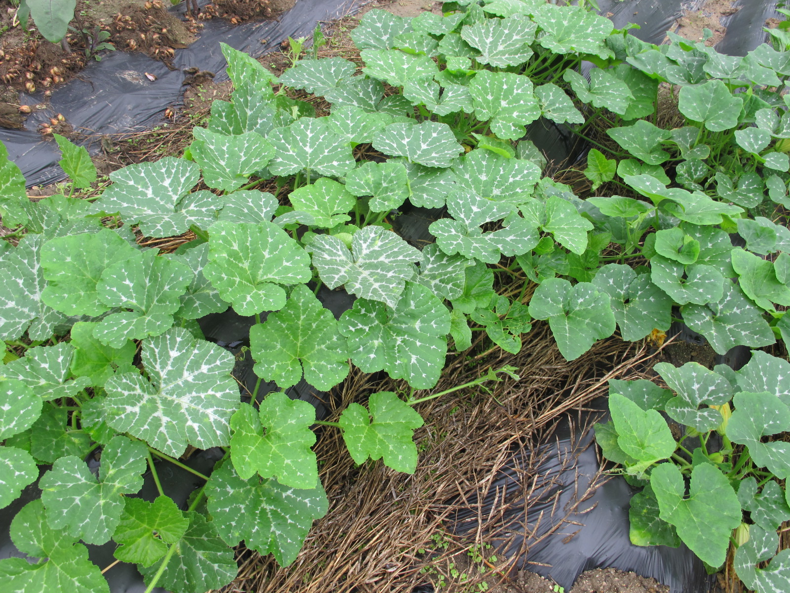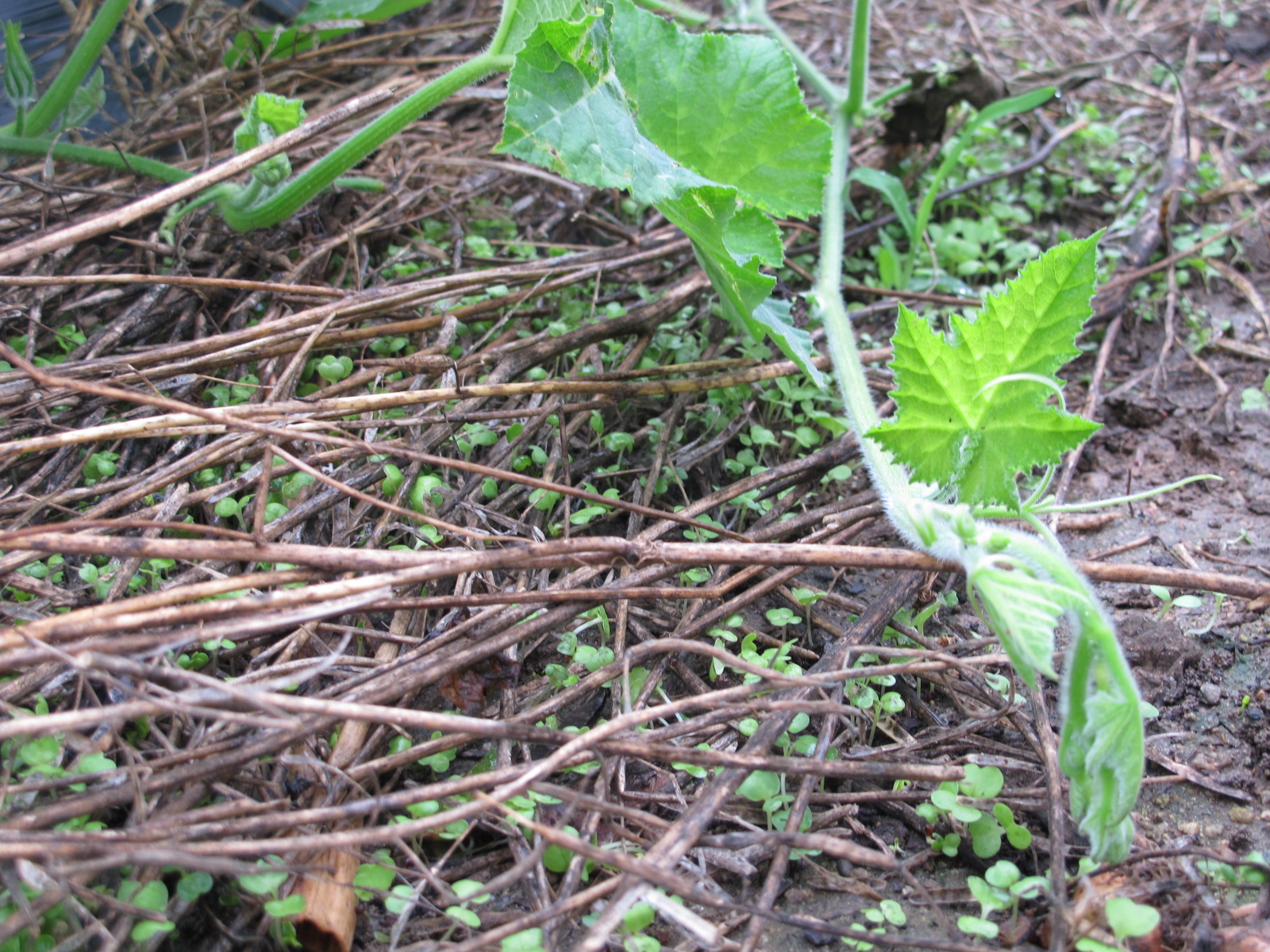 사 진 7 : 호박순 밑에 마른 유채덤풀을 깔아줬더니 유채씨가 떨어져서 수북하게 유채 싹이 올라 왔습니다.