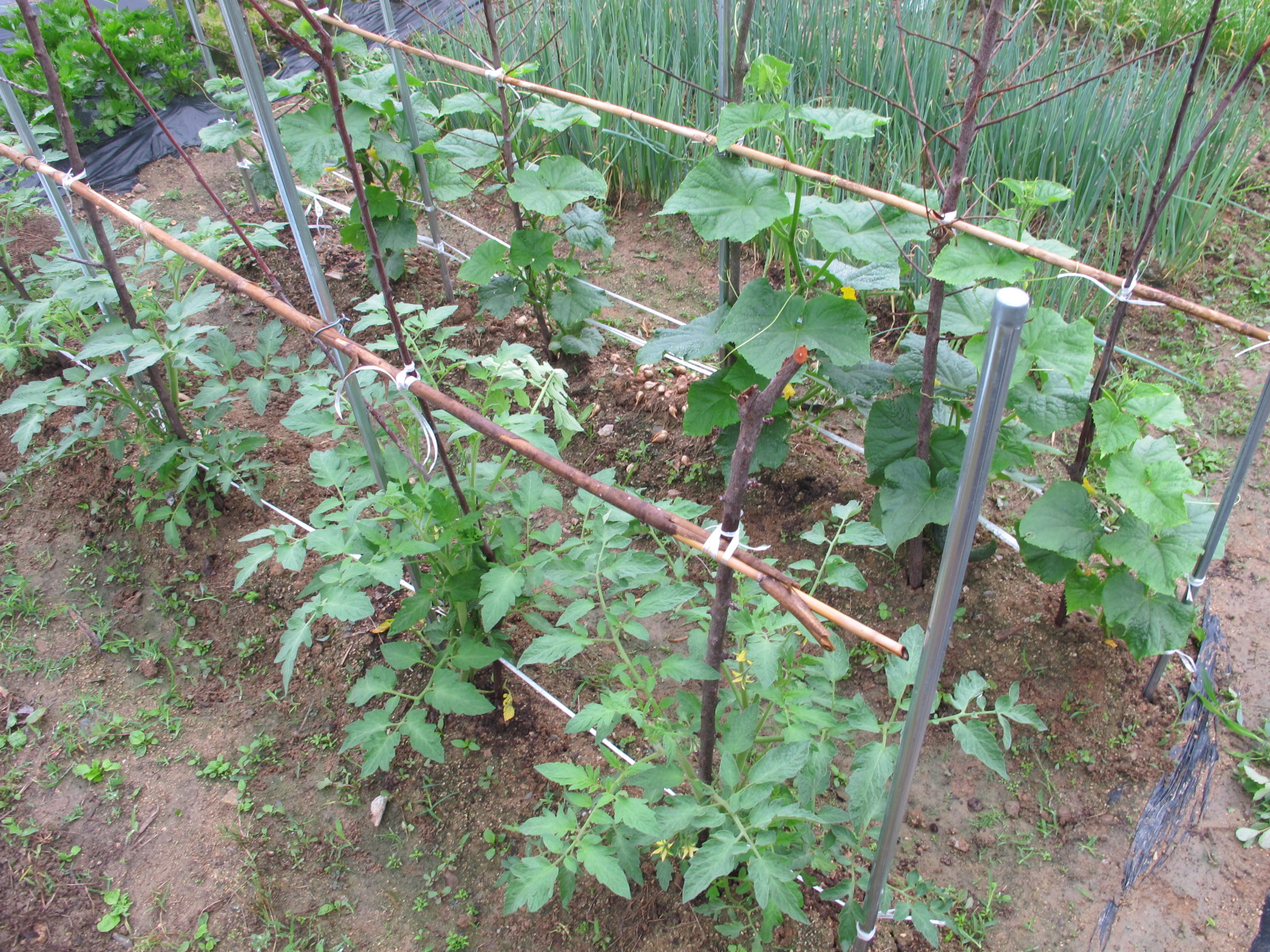 사 진 10 : 도마토와 가시오이 몇 포기를 심었습니다.