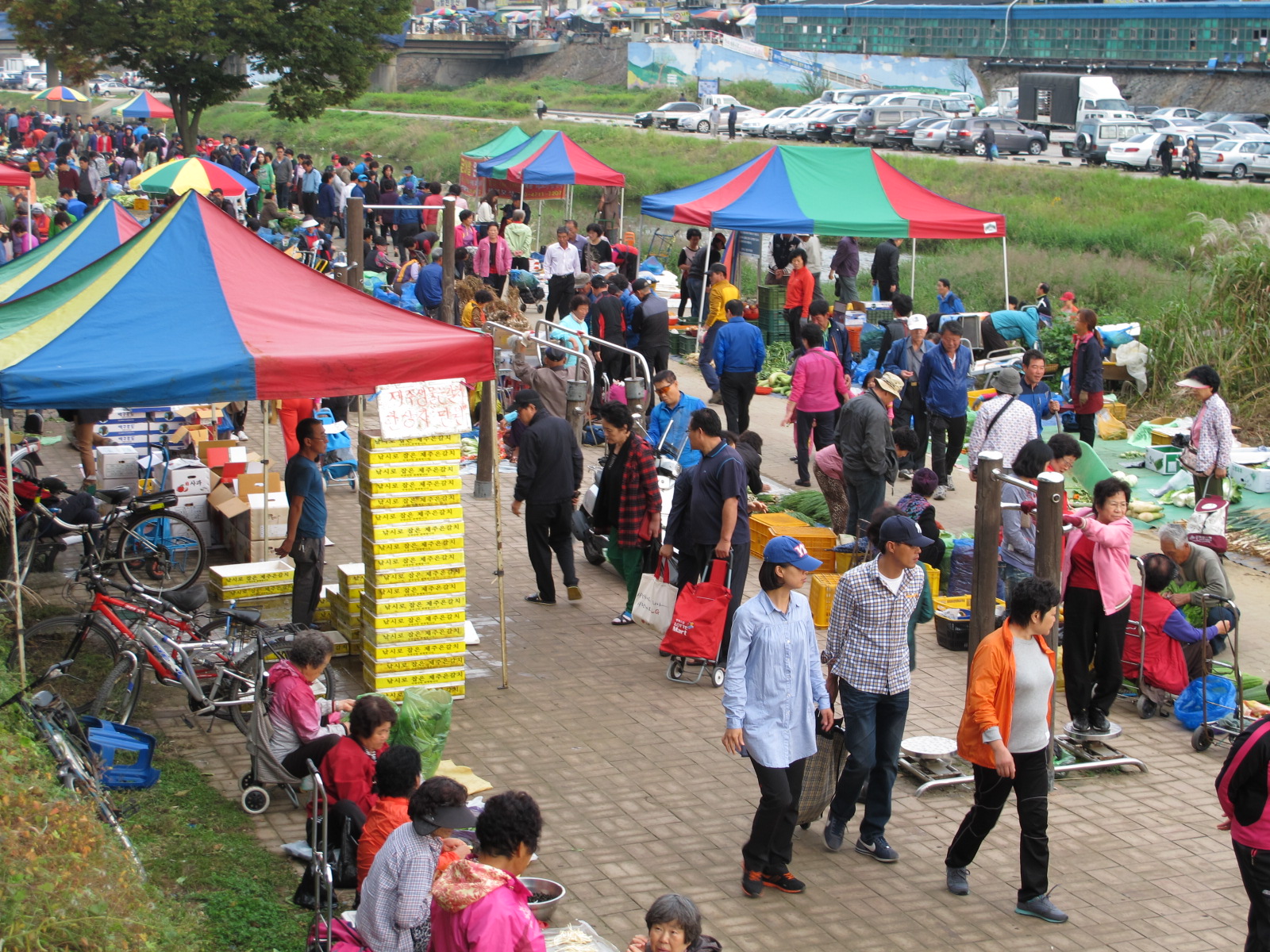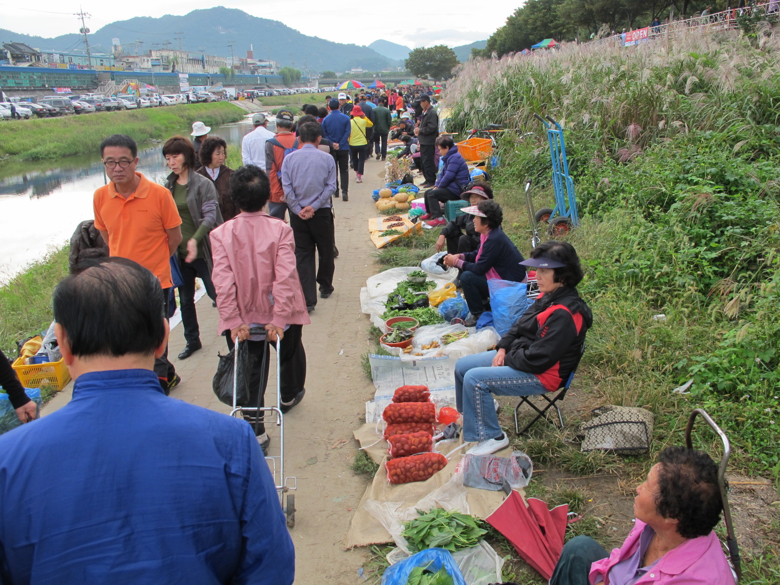 사 진 3: 천변 새벽시장 풍경(동쪽에서 서쪽 방향을 찍었음)