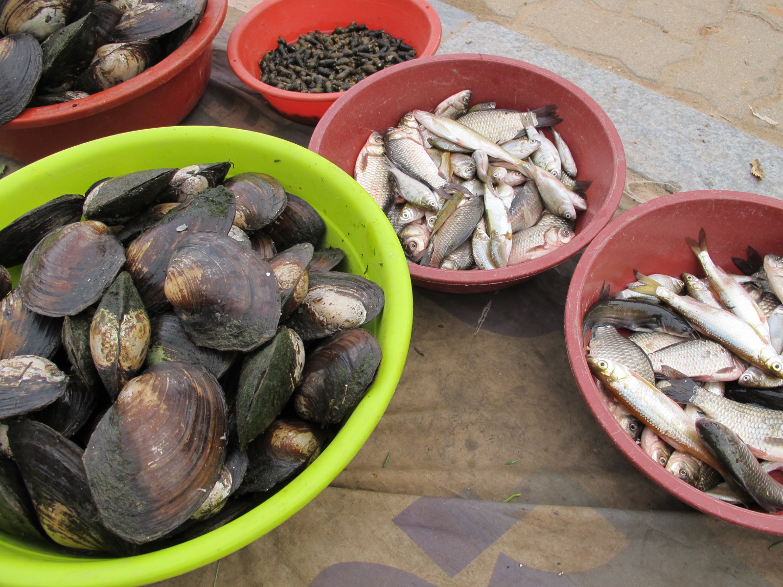 사 진 4: 민물고기 입니다. 말조개와 다슬기, 붕어 피래미가 보입니다.