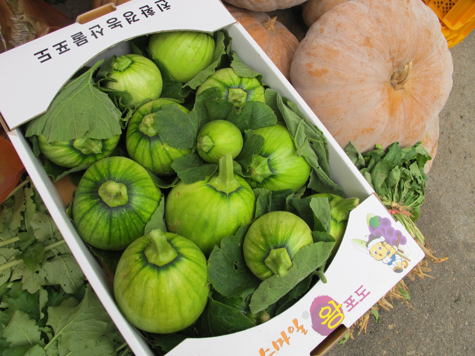 사 진 6: 호박. 구절초축제장 입구 가게에서 본 애호박과 늙은 호박